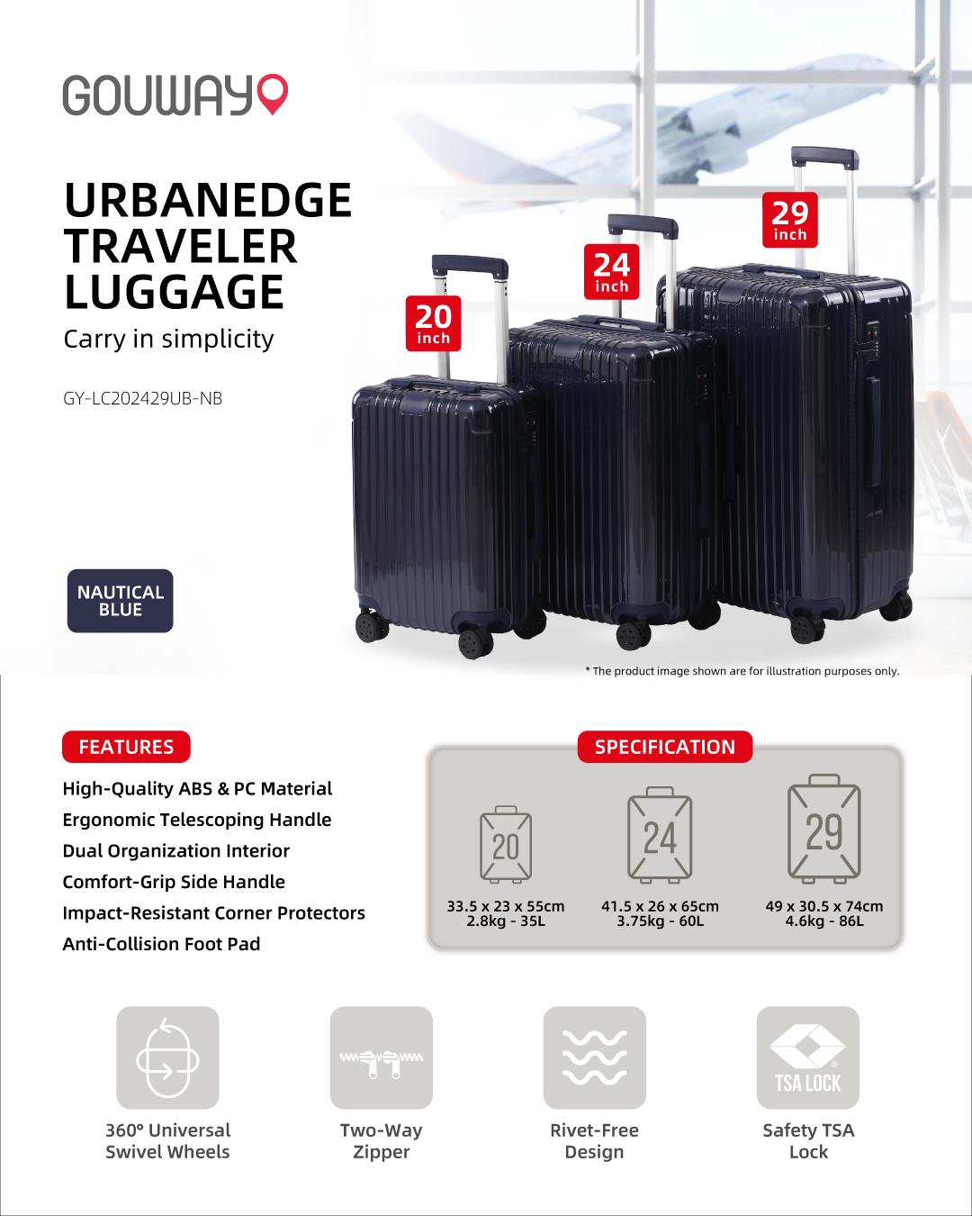 GOUWAY UrbanEdge Traveler Luggage Set - Nautical Blue