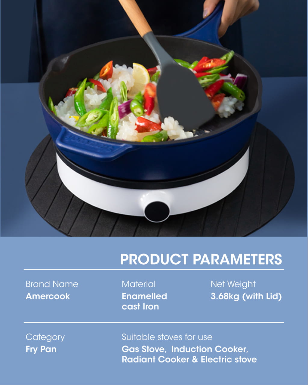 Amercook Le Plurier II Enamelled Cast Iron 28cm Frypan (2.6L)