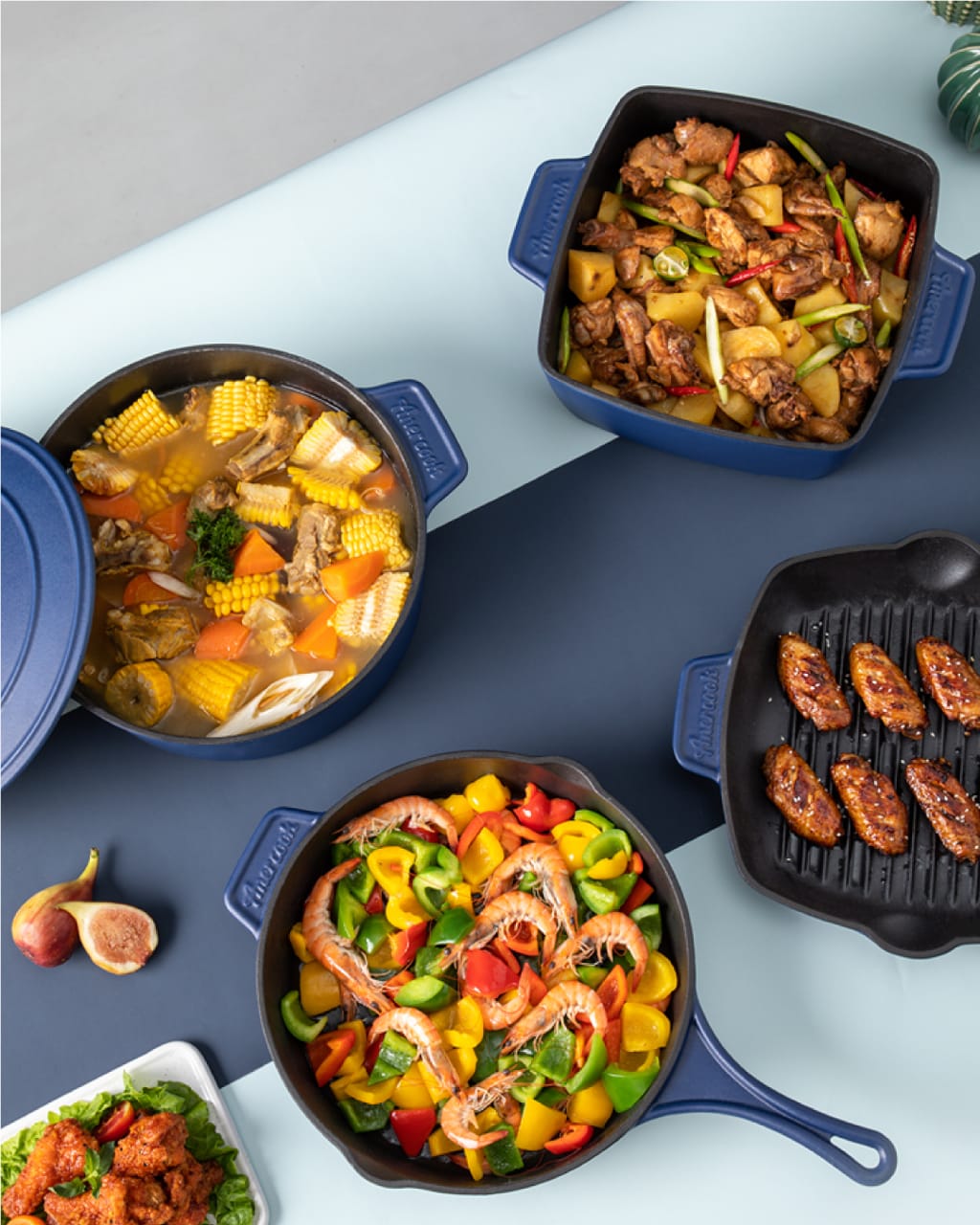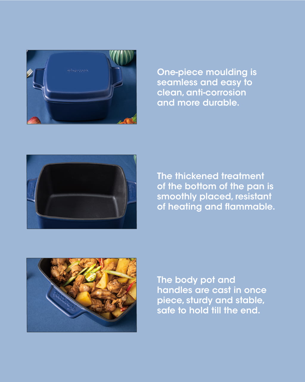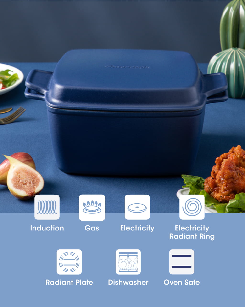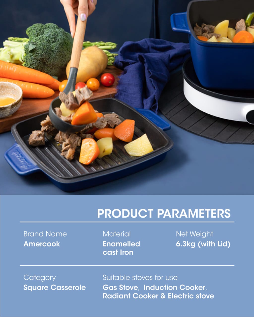 Amercook Le Plurier II Enamelled Cast Iron Square 24cm Casserole (4.3L)