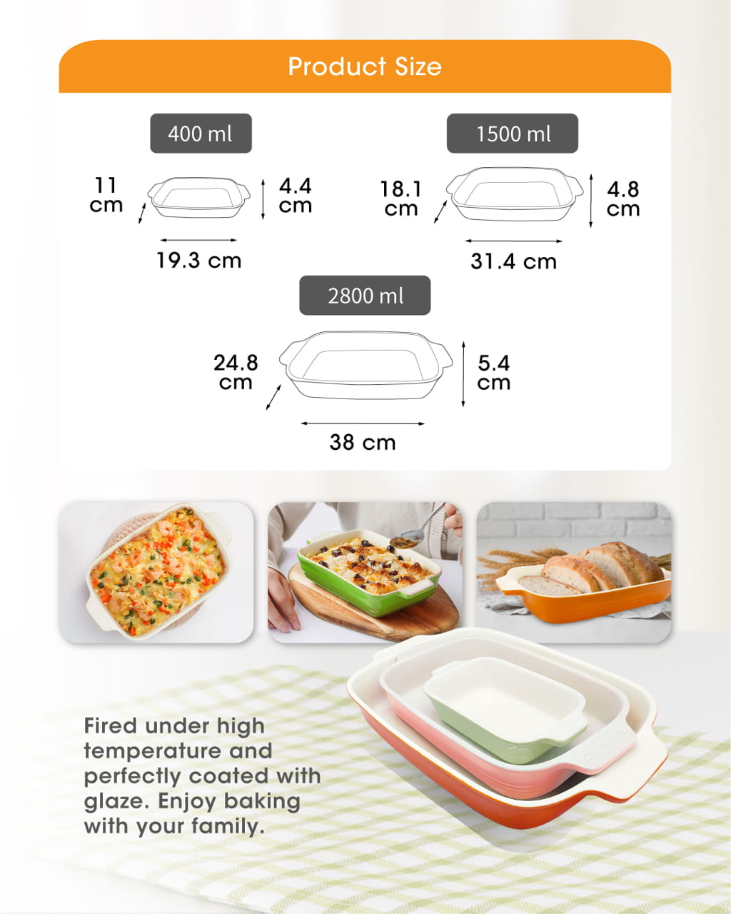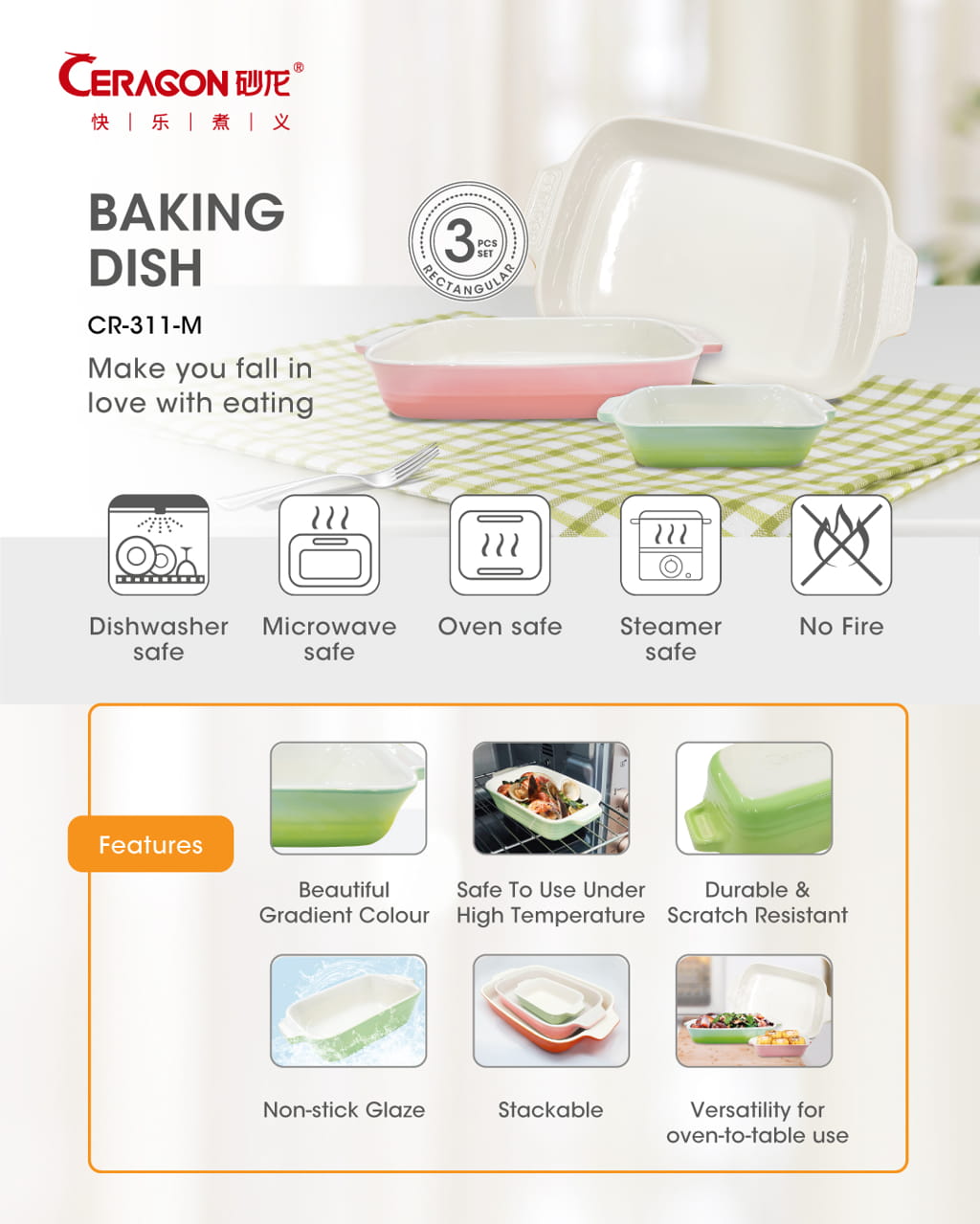 Ceragon Baking Dish Rectangular 3pcs Set