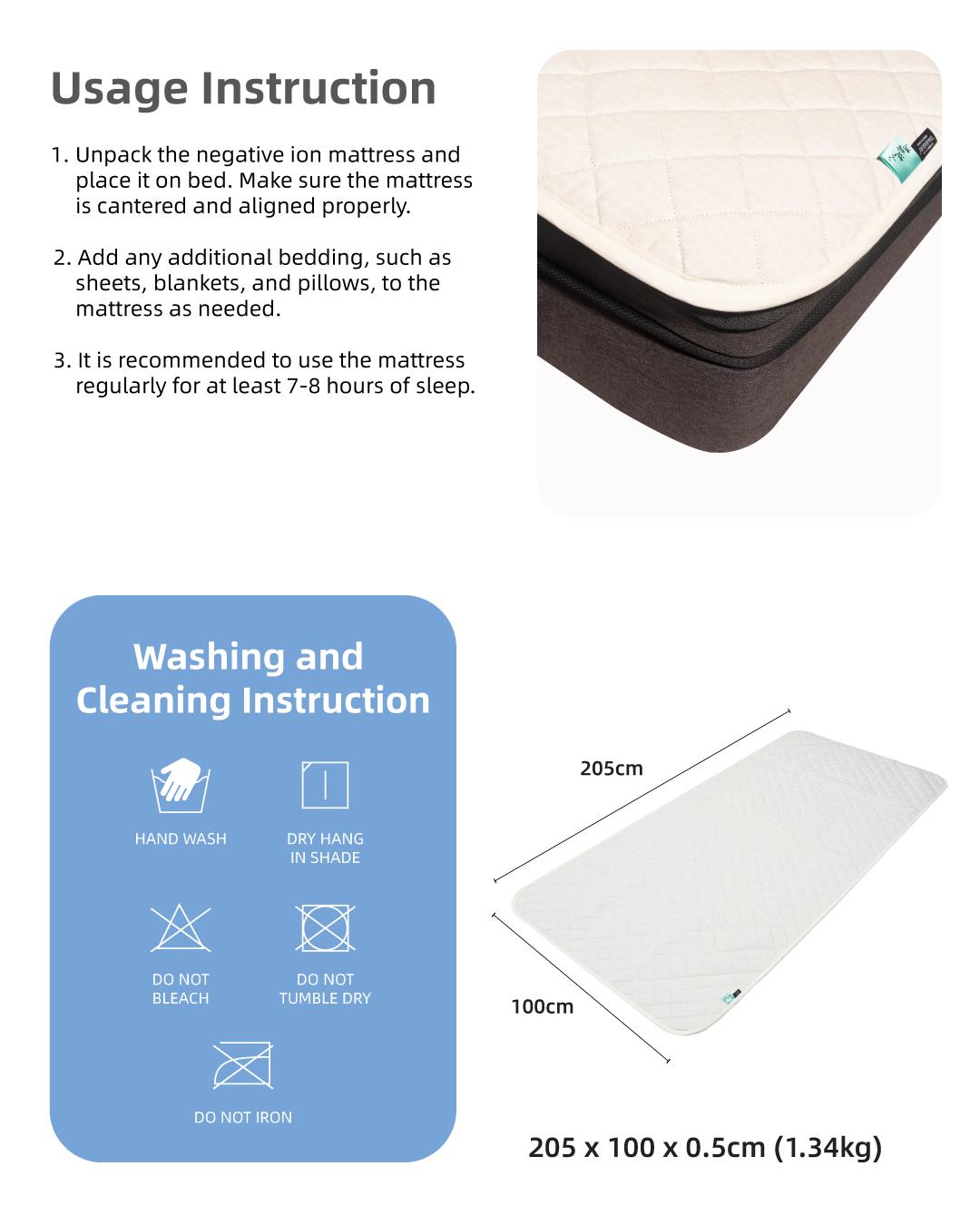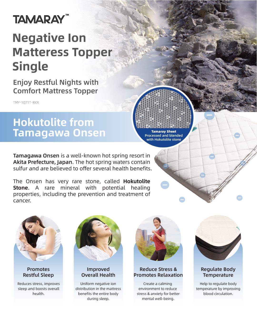 Tamaray Negative Ion Mattress Topper (Single size - 100x205cm) Free ODREAMS Premium Super Tencel™️ Bolstercase (Almond)